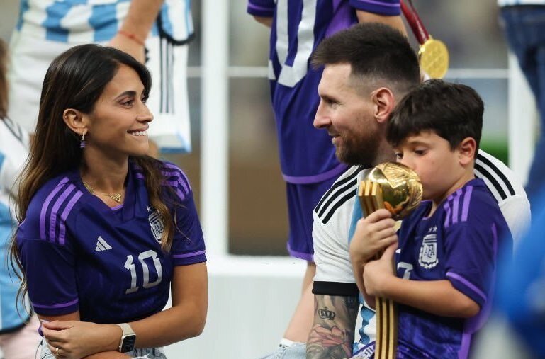 همسر مسی هم بعد از قهرمانی تیم ملی آرژانتین با جام جهانی ۲۰۲۲ عکس گرفت.